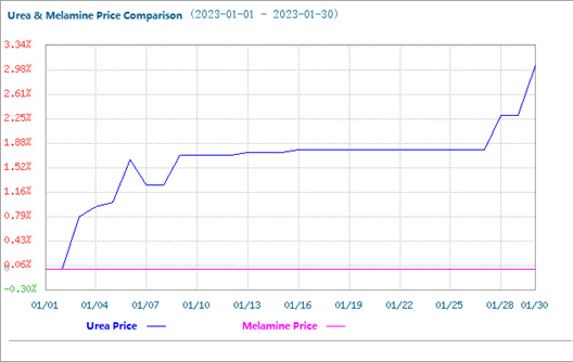 As of January 30, the average price of melamine enterprises was 8,233.33 yuan/ton (approximately US$1,219/ton), which was the same as the price on January 1.